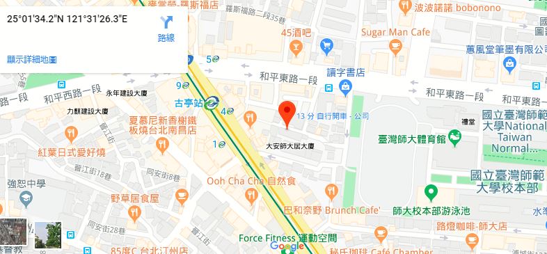 | 住所Adress | 台北市大安區羅斯福路二段77巷5F(5층 건물) |