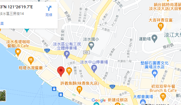 | 住所Adress | 新北市淡水區中正路4F(5階建て) |