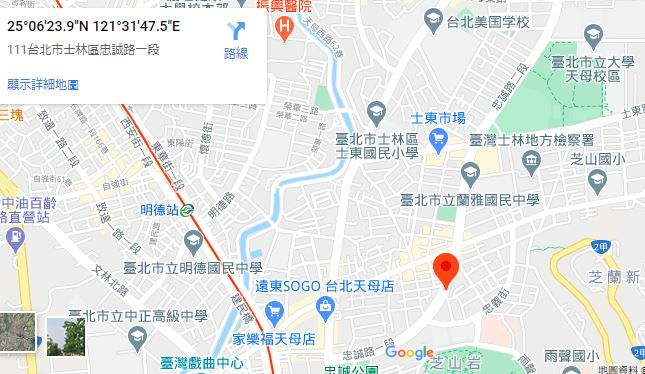 | 住所Adress | 台北市士林區忠誠路一段7F(9층 건물) |