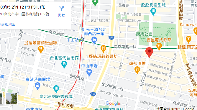 | 住所Adress | 台北市中山區林森北路2F(7층 건물) |