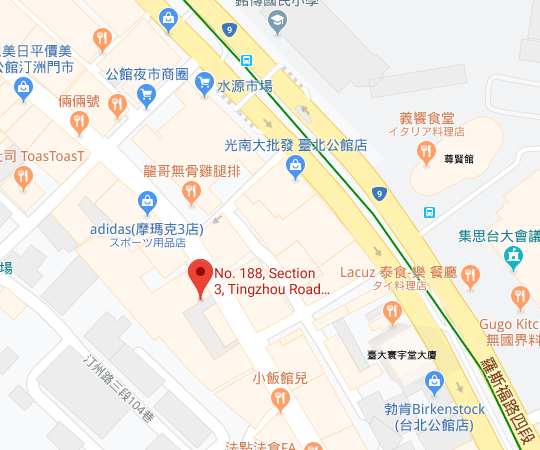 | 住所Adress | 台北市中正區汀州路三段188號2F(2A5호실) |