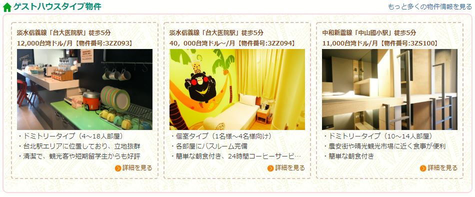 詳しくは、トップページの一番下、「ゲストハウスタイプ物件」と「学生寮」をご覧ください。