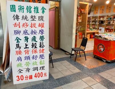 ナイトマーケットの中にはたくさんのマッサージ屋さんがあります。しかも台北最安値で、なんと30分200台湾ドルで、気功などを組み合わせた少し凝ったマッサージでも30分400台湾ドルと、中山や101のエリアに比べると半額以下の値段でマッサージを楽しむことが出来ます。ナイトマーケット奥に行く方が安くなる傾向があるので、すぐにお店を決めないで、一度一周してからお店を決めるといいでしょう。安かれ悪かれということはなく、施術者を選べば価格以上の効果を得ることが出来ます。
