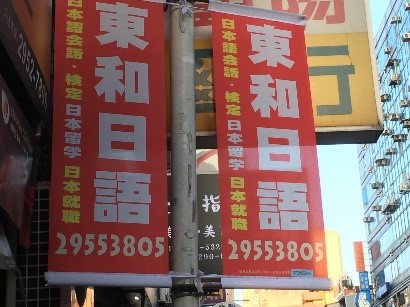 또, 이 근처는 일본어학원과 한국어학원도 많습니다. 거리를 걷다 보면 한국어를 배우고 있는 학생을 만날 수도 있습니다. 영어 학교도 있어서 중국어 이외에 영어를 배워 보는 것도 좋을 것 같습니다.