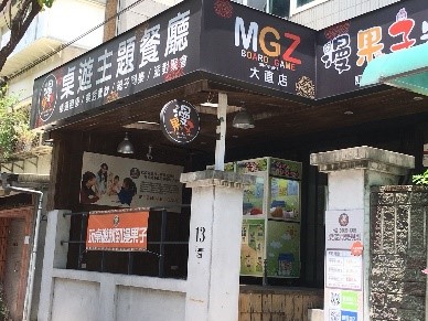 大直は、学生の街としても知られています。ファッションデザインの分野で台湾のパイオニア的存在である実践大学があり、大学の近くには、安くて美味しいレストランが点在しており、重宝します。上真ん中の写真は、お洒落なイタリアンのお店ですが、100台湾ドルくらいで、パスタが食べられます。マンゴーかき氷や、学生街ならではのボードゲームカフェなどもありますね。学生のために、本屋さんやコインランドリーなども利用でき、便利ですね。
