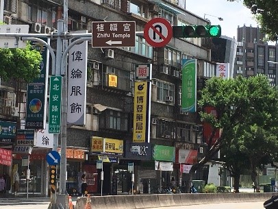 大直駅のメイン通りは、こ「北安路」になります。駅から、美麗華ショッピングセンターの方まで伸びている幹線道路で、道沿いには、レストランや、スーパー、ドラッグストアなど大小様々なお店がひしめき合っています。