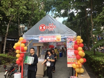 百貨店の周辺では、頻繁にイベントが開催されています。この日は、フリーマーケットが行われていました。「Cousins Maine Lobster」というロブスターサンドのお店が来ていました。紹介を見るとミシュランでも紹介された世界で一番おいしいロブスターサンドとのこと。少し高いですが、食べてみることにしました。ロブスター半匹分で290台湾ドル(1000円超)と台湾にしては少しお高めでしたが、さすがロブスター!香りが違いますね。