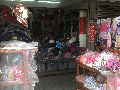 このエリアは古くからの問屋街としても知られており、「台北後駅ショッピングエリア」という名称がついています。大通り沿いに多くのお店が並んでいますが、華やかな東区や信義エリアとは異なり、商品は若干高年齢層向けのものが中心のようです。