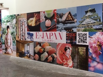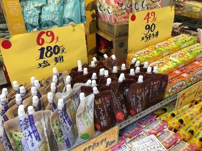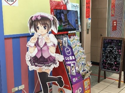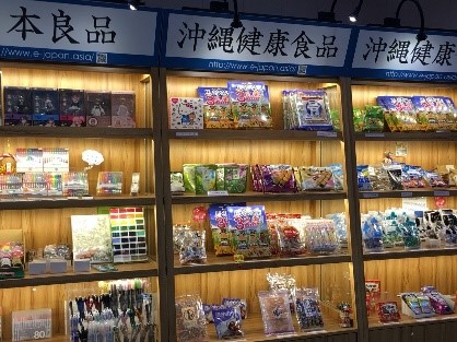 地下街には、レストランの他にも色々なお店が入っています。郵便局や、100元カット、東南アジアの食品を扱うスーパーなど。「E‐JAPAN」という日本の食品を扱うお店もあります。定期的に日本各地の物産を販売しており、この時は沖縄展を開催していました。食品のみならず、メイド喫茶まで日本から輸入しているようです…。