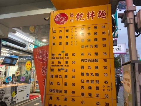 オフィス街だけあり、いたるところに食べ物屋さんがあります。金融関係が多いので、オシャレなレストランが多いのかと思いきや、庶民派のお店の方が大多数です。だいたいどのお店も100元前後でおなか一杯食べれるくらいの価格設定です。台湾飯以外にも、マックやKFC、すき家や吉野家などおなじみのお店もたくさんあり、食事の選択肢には困りません。