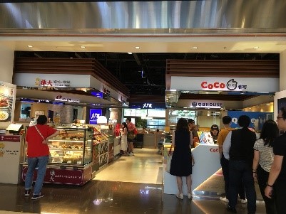 駅の上には「CITYLINK」というモールがあります。4階建てで、飲食店が中心です。日本から進出してきているチェーン店が多く入っており、CoCo壱番屋、大戸屋、大阪王将、らあめん花月嵐など、お馴染みのお店が並びます。日系のお店の他に、回転寿司の爭鮮など台湾ローカルの日本料理屋さんもあり、台湾の味が慣れない方にはうれしいラインナップとなっています。そのほか、韓国料理、タイ料理、香港料理など、国際色豊かな異国料理が揃っており、選択肢が多いのが嬉しいですね。4階には手作り体験教室もあり、週末は学生や家族連れでにぎわっています。