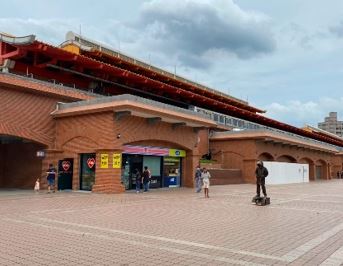 駅を出ると目につくのがこちらのデパートです。淡水モノレールに乗って少し先まで行くと大きなショッピングモールもありますが、駅から徒歩圏内はこの1軒のみです。ショップ