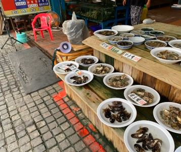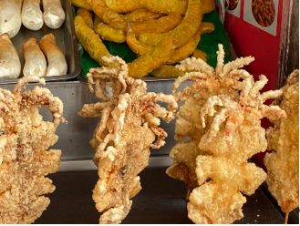 デパートとは反対側の淡水湾の方には、淡水老街が広がっています。ここは1年を通して、常に賑やかなエリアです。数えたことはありませんが、少なくとも500店舗以上はあるのではないでしょうか。屋台だけでなく、海鮮料理のレストランや、おしゃれなカフェ、マッサージ店、お土産物屋さんなどありとあらゆる種類のお店が立ち並びます。毎日違うお店を食べても、全店舗を食べきるには相当な時間がかかりそうです。老街は河川敷の通りと、河川敷から一本入った通りに分かれており、前者は屋台、後者はお土産物屋さんが中心なイメージです。また、この2つの通りを繋いでいる路地にもたくさんの名店が集まっています。特に淡水横丁にあるお粥(写真の3列目)はお薦めです。これ以外にも隠れた名店がたくさんあるので、ぜひ皆さんの足で探してみてください。無料でコーヒーが飲めるお店や、食材を店頭で選び、指定した方法で調理をしてくれるお店などバラエティも豊かです。