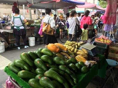 지하철 근처에 노천시장이 있습니다. 대만은 남국이어서 과일 종류가 많이 있고 맛있습니다. 시장 안에도 대만 길거리 음식이 많아서 편리합니다.