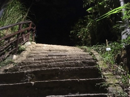 사진 왼쪽 위에는 등산 보도 입구입니다. 20분~30분 정도 등산하면 야경을 보일 수 있는 장소가 도착할 수 있습니다. 등산 보도가 잘 되어 있어 오르기 편하고 쪼리를 신고 오르는 사람들도 볼 수 있습니다. (꼭 운동화나 등산화를 신 필요 없음)