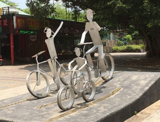 公館は、また自然が豊かなエリアとしても知られています。少し街を外れると河川敷があり、サイクリングロードが設備されています。左の写真は「寶藏巖」と呼ばれる歴史的建築物の集まる集落です。今は、芸術家が多く住んでおり、別名「台北芸術村」と呼ばれています。