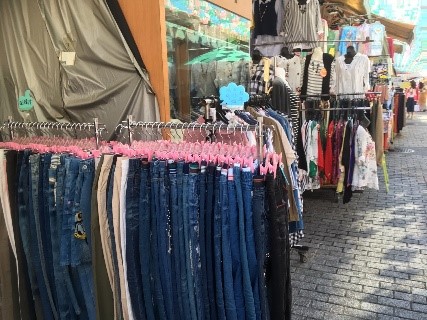 松江南京駅で見逃せないスポットが「四平街陽光ショッピングエリア」ですね。100㎡くらいの狭いエリアに100以上のお店が集まっています。大きく、衣服エリアとフードエリアに分かれています。衣服エリアには、洋服や靴・アクセサリーなどを売るお店の他、観光客向けにお土産屋さんなどもあります。