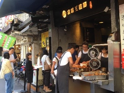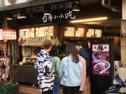 こちらはフードエリア。この辺りに勤めている人たちは、ここで昼食や夕食をとる人が多いです。台湾の屋台料理が中心で、ここに来れば、台湾中の美食を楽しむことが出来ます。特に豚足のお店である「富霸王豬腳」はいつ来ても行列のできている人気店です。豆花や仙草などの台湾スイーツも充実しています。台湾料理の他に、ちょこちょこ香港料理やイタリアン・東南アジアの料理なんかも見かけます。