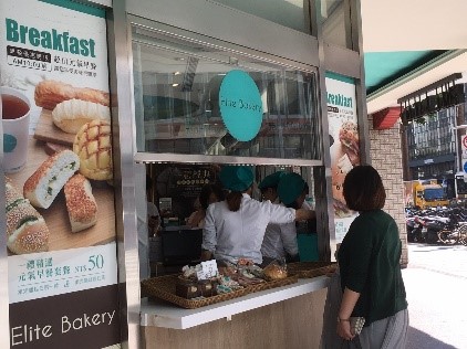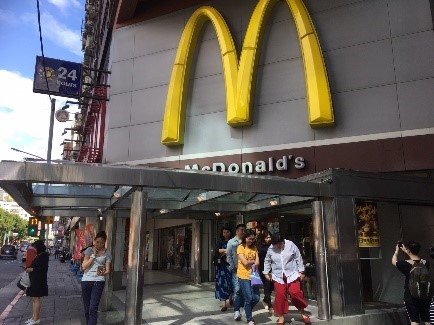 マックやモスバーガーなどのファーストフードも充実しています。写真左下の六福ホテル内にある飲茶は、台湾でも一二をあらそう名店として知られています。1階にはパン屋さんもあり、朝が忙しい人にお薦めです。台湾人が大好きなドリンクスタンドも多数あり。昼休みの時間帯はどのお店も賑わっています。私のお薦めは、「KEBUKE」です!