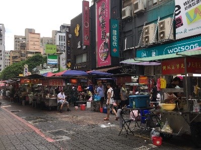 中山国小駅にはナイトマーケットもあります。「双城美食一條街」は小規模ですが、台湾の魅力がたっぷり詰まった屋台街です。夜の方がにぎやかですが、お昼間でもぽつぽつお店は開いています。近くにはマッサージ店も多いです。