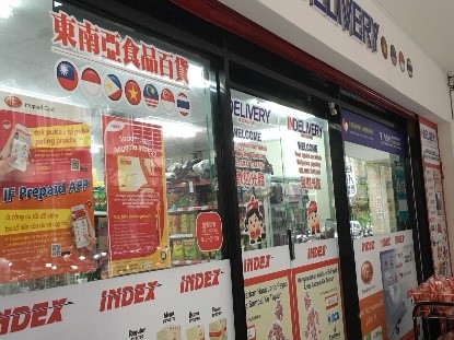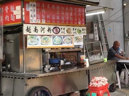 このエリアのもう1つの特徴は、外国人労働者が多いこと。フィリピンやベトナム、インドネシアなど東南アジアからの出稼ぎ労働者が中心で、そのため東南アジアの食品を扱かうお店やレストランがたくさんあります。写真は左から、フィリピン料理店、ベトナムフォーの屋台、東南アジア系の商品を集めたコンビニです。
